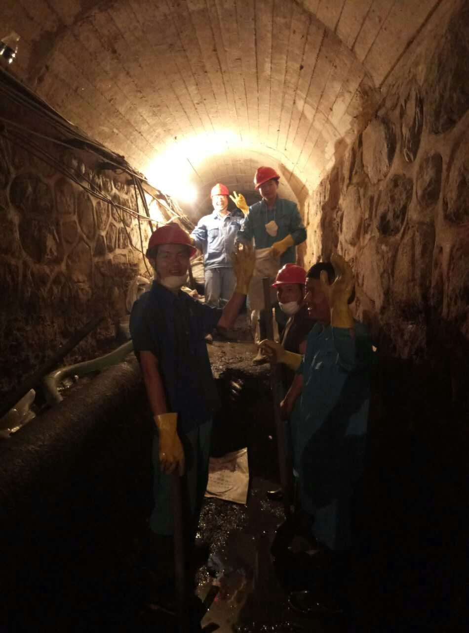 銅礦廠區主外排水道是一條數百米長的涵洞,已經三十多年未清理,淤泥厚達一米多。為保證處理達標的外排水不受二次污染,必須對涵洞進行徹底清理。幾個電鋅車間的八十余名員工承接了這項艱巨任務。他們合理組織分工,三班倒晝夜奮戰,僅用一周時間,即將數百方淤泥清理干凈,并對涵洞底面重新進行了平整硬化。在此過程中,他們還配合完成了數百米外排管道鋪設、淤泥倒運等任務。帶隊參戰的電鋅二車間黨支部書記陳小勇在本班完成工作下班后,還必須等接班人員到場,向他們交接清楚涵洞內的情況和安全注意事項后才離開。