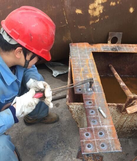 猶記4月間,郭雨宏師傅帶領胡建平和鄭武博為6#爐更換打字架——只見在郭師傅的指揮下,行車不斷將新打字架起吊、落下,對打字架的安裝位置進行著精細調整,不知道反復了多少遍,終于聽到郭師傅的那聲“好!”緊接著就是焊接。小胡和小鄭輪流上陣,戴著焊接專用的“面具”瞄準焊接位置后就“開火”——登時,火花四濺!耀眼的白光真應了網絡上流傳的“亮瞎眼”。焊接結束了,他們的衣服上也留下了火花光顧后的紀念。所以,如果看到他們穿著滿布小洞紗網似的衣服,請別驚訝,都是焊接時飛迸的火星子留的記號!