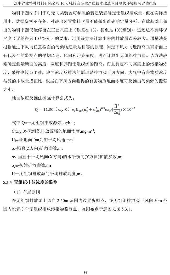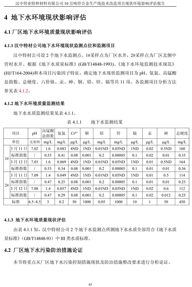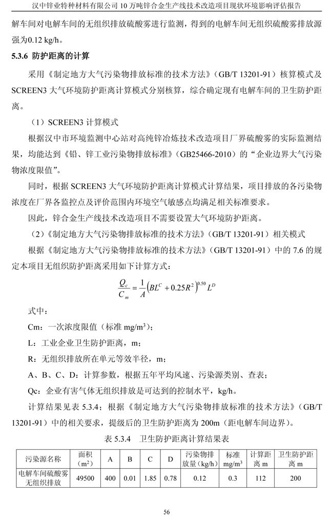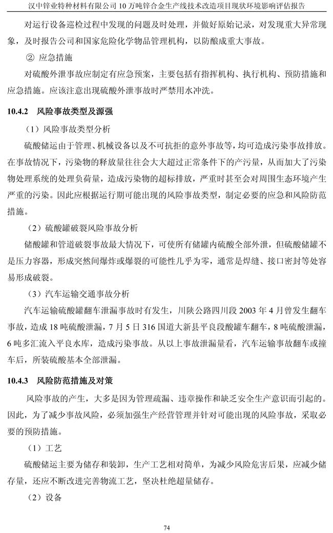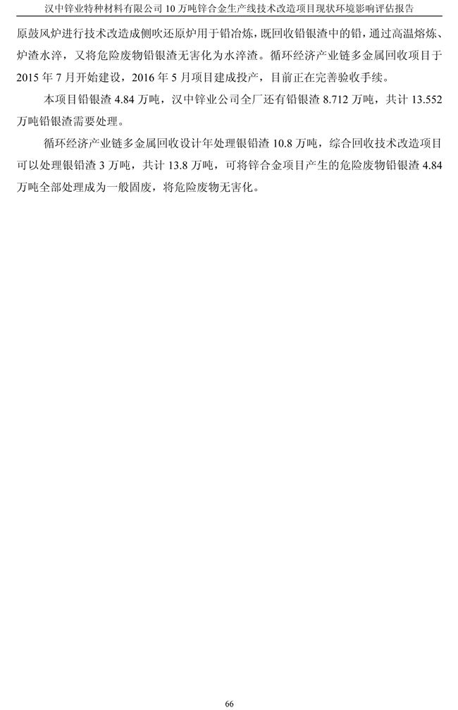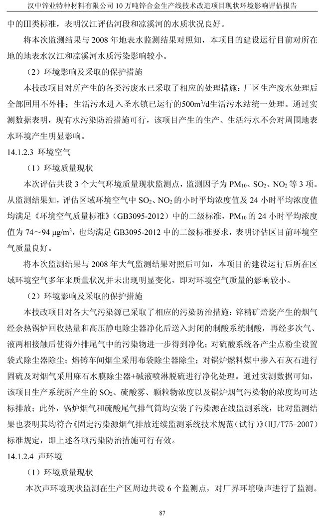 漢中鋅業(yè)公司鋅合金項目現(xiàn)狀環(huán)境影響評估報告