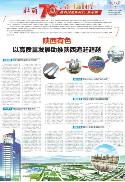 陜西日報:陜西有色 以高質量發展助推陜西追趕超越