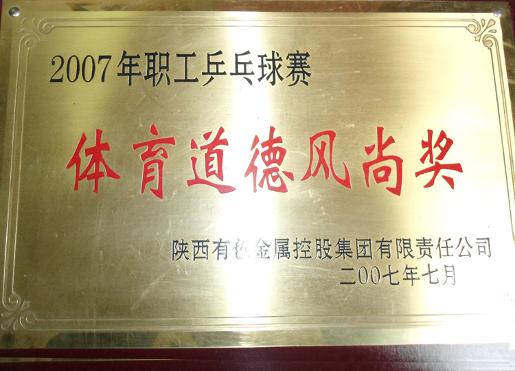 2007年職工乒乓球賽中獲體育道德風(fēng)尚獎(jiǎng) -