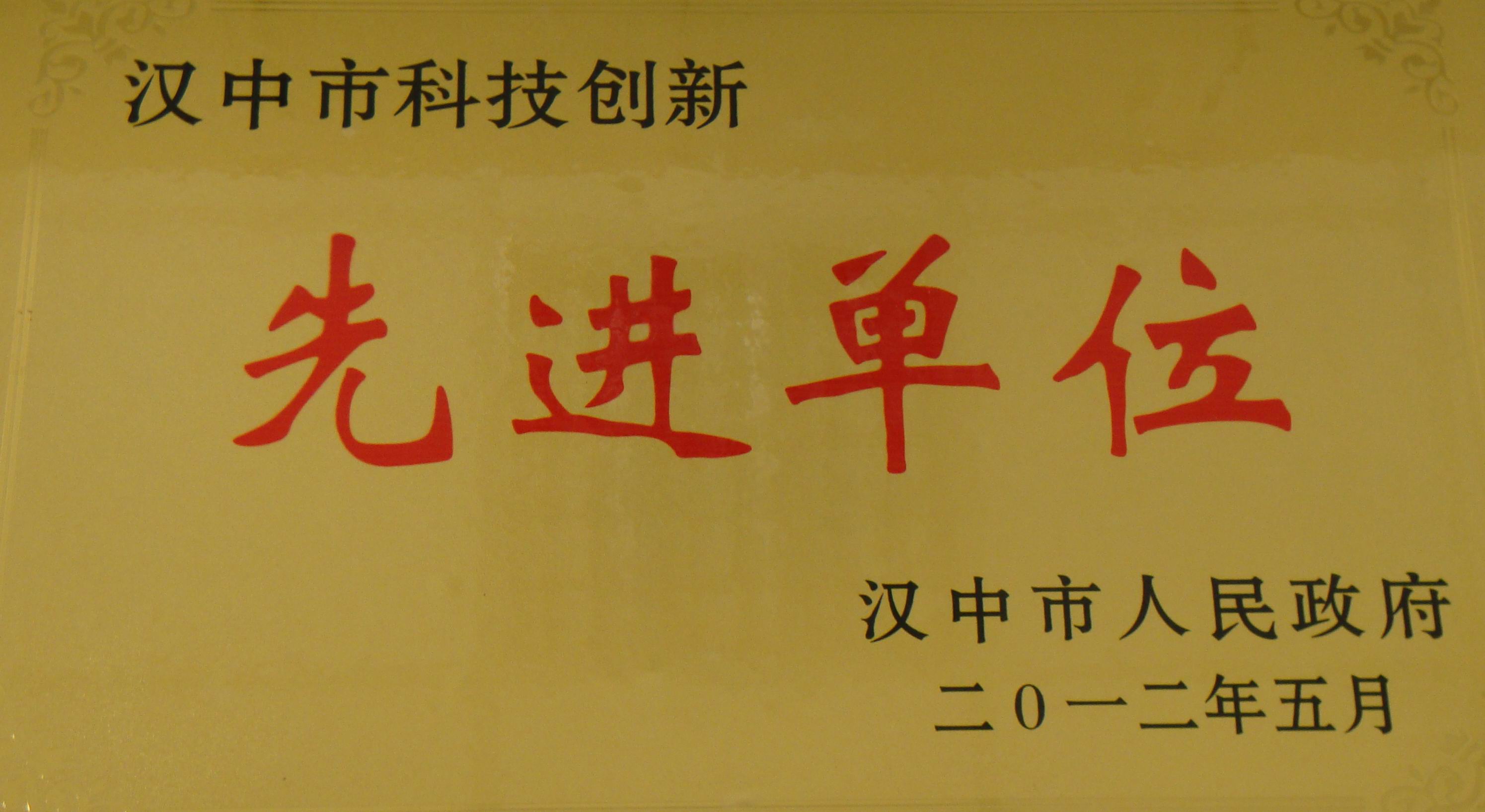 2012年漢中市科技創(chuàng)新先進(jìn)單位 -