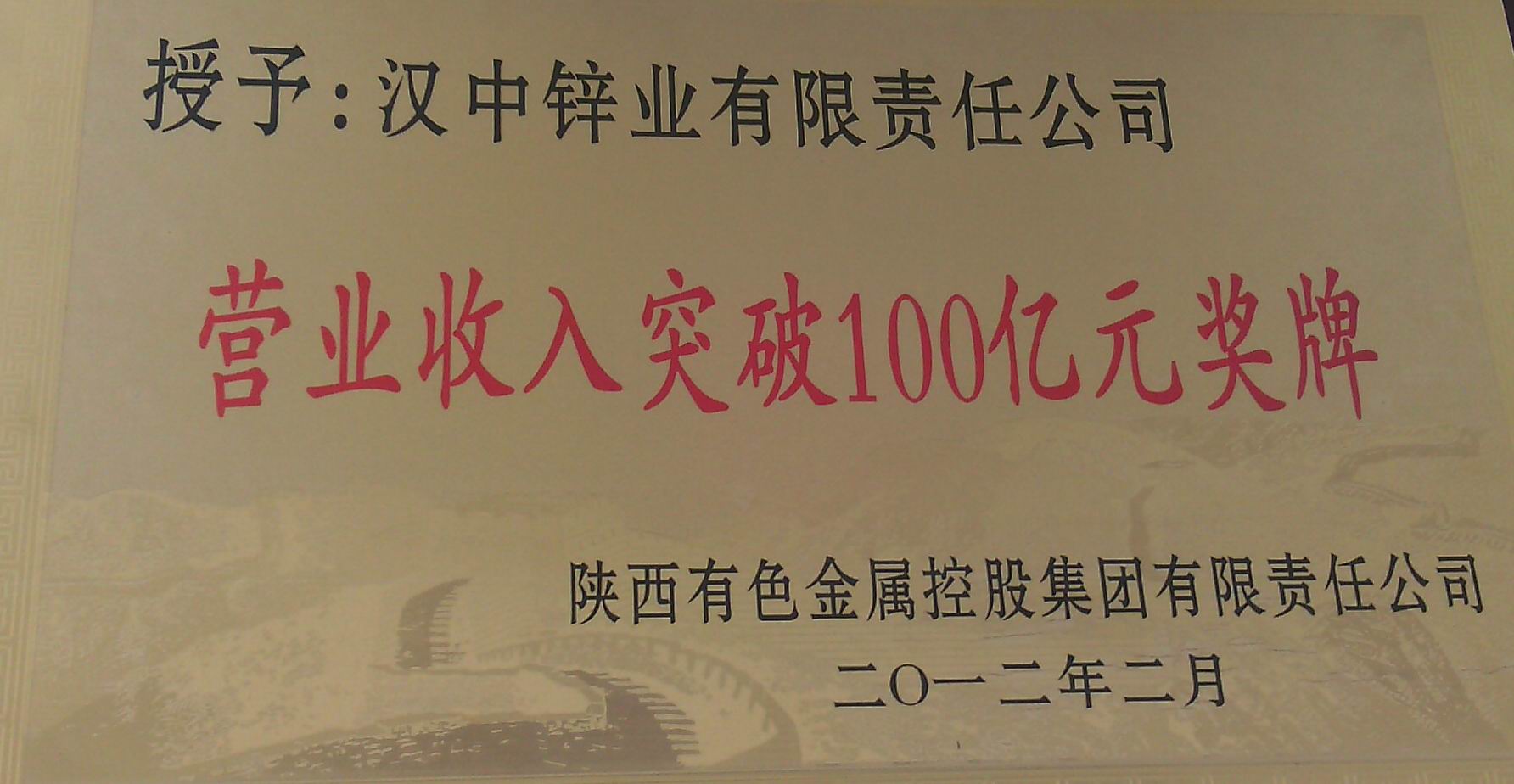 2012年?duì)I業(yè)收入突破100億元獎(jiǎng)牌 -
