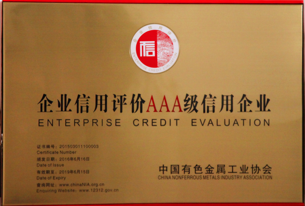 2016年企業(yè)信用評(píng)價(jià)AAA級(jí)信用企業(yè)—中國(guó)有色金屬工業(yè)協(xié)會(huì) -